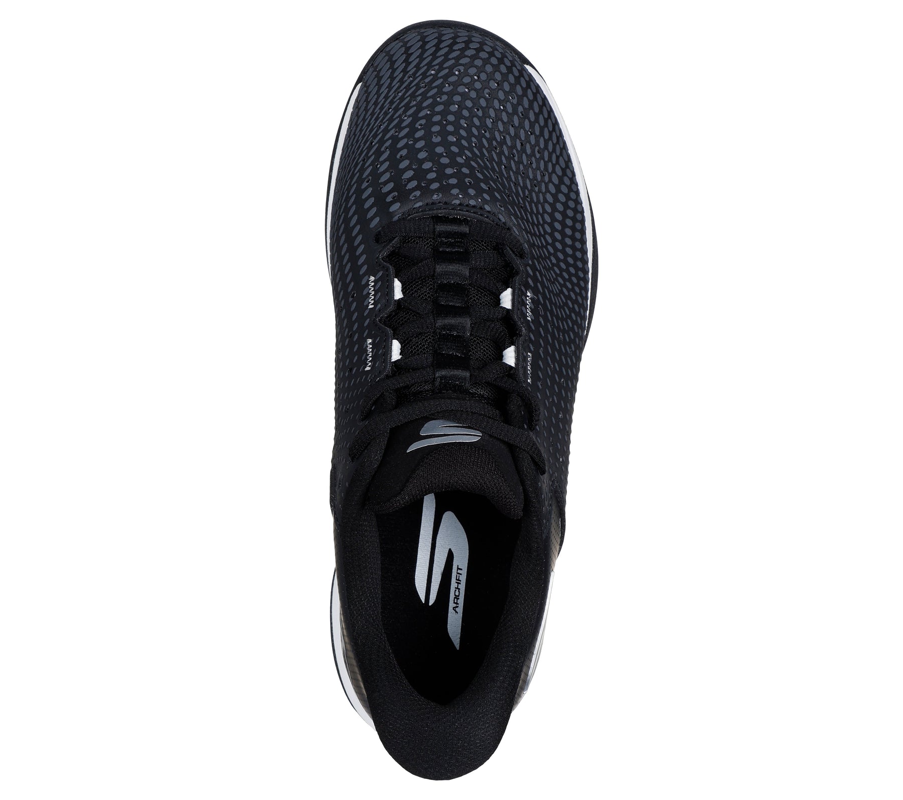 Synthetic 3D print upper with adjustable laces, Relaxed Fit® for a roomy comfort fit at toe and forefoot, Crafted with 100% vegan materials, Ultra-lightweight, responsive ULTRA FLIGHT® cushioning, Goodyear® Performance Outsole delivers enhanced traction, stability, and durability, 1 1/4-inch heel height, Machine washable, Skechers Performance™ logo detail, This design has been granted the Seal of Acceptance by the American Podiatric Medical Association (APMA), Skechers Hands Free Slip-ins® for an easy fit, Heel Pillow® holds your foot securely in place, Patented Skechers Arch Fit® insole system with podiatrist-certified arch support, developed with 20 years of data and 120,000 unweighted foot scans, Removable insole helps mold to your foot to reduce shock and increase weight dispersion, Also suitable for padel and tennis game play.