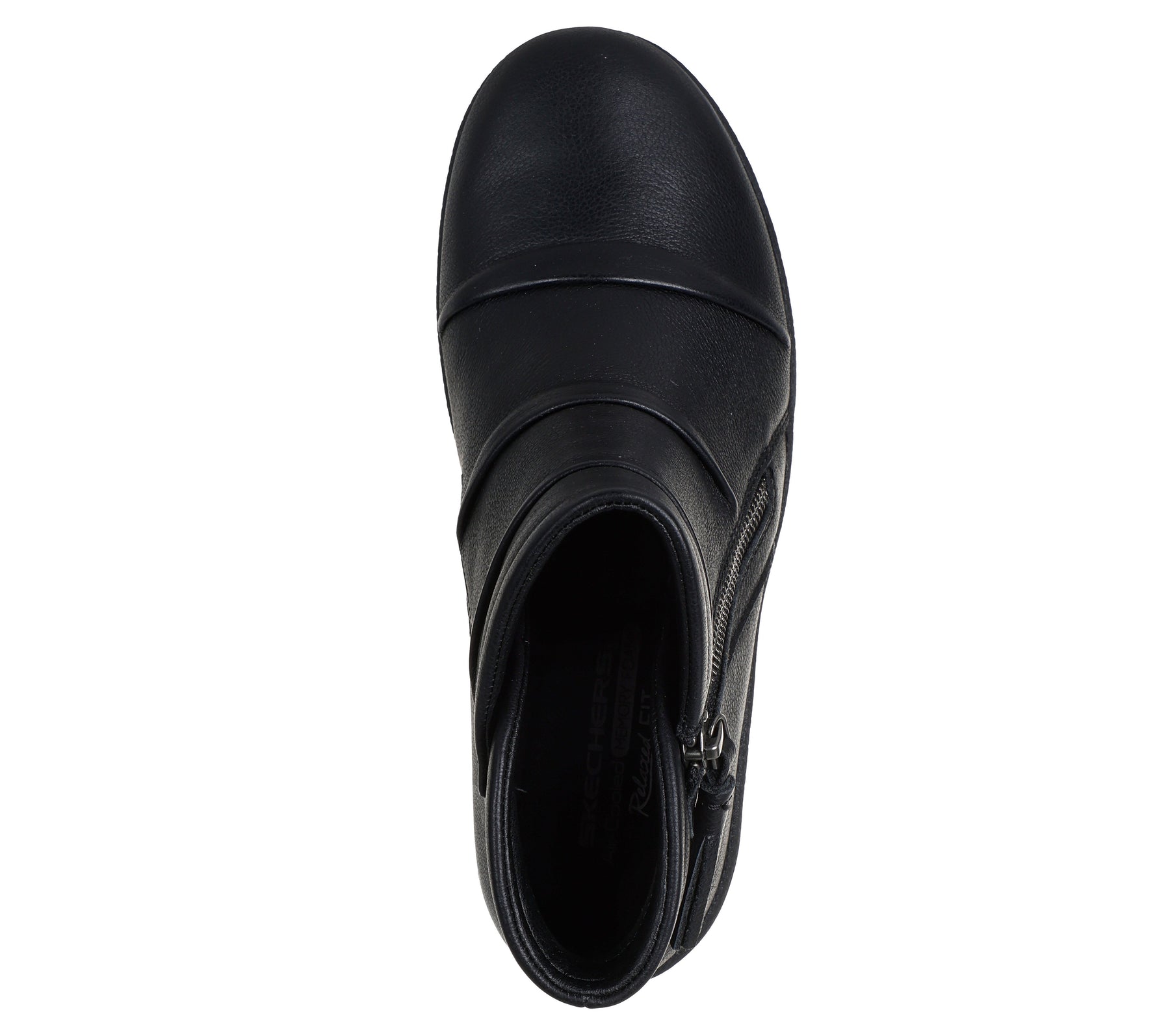 Finish your look with all-day comfort and stylish flair with Skechers Relaxed Fit®: Parallel Lite. This fashion wedge bootie features a 3M® Scotchgard®-treated suede upper with a pleated vamp, side-zip closure, and a cushioned Skechers Air-Cooled Memory Foam® insole.