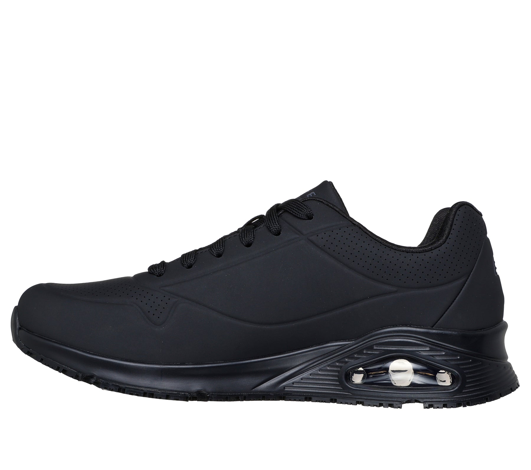 Comfort, style, and safety combine easily in Skechers Work™ Slip-Resistant Relaxed Fit®: UNO - Sutal. This sporty utility lace-up features a roomy perforated durabuck upper with an Air-Cooled Memory Foam® insole, visible Skech-Air® airbag midsole, and slip-resistant traction outsole.