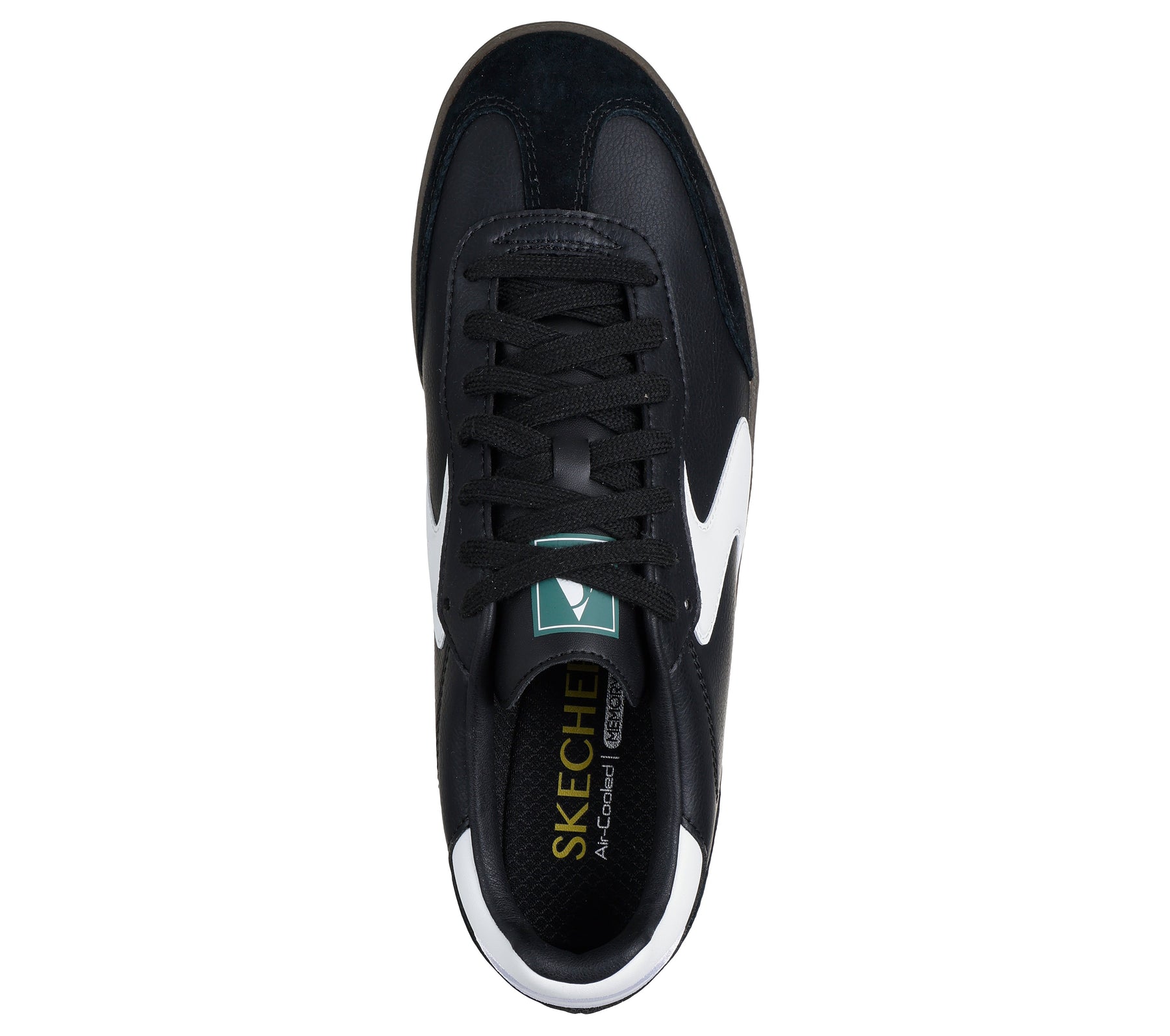 Lace-up synthetic duraleather and pigskin suede upper, Contrast 'S' quarter logo detail, Flexible traction rubber outsole, 3/4-inch heel height, Skechers® logo detail, Skechers Air-Cooled Memory Foam® cushioned comfort insole.