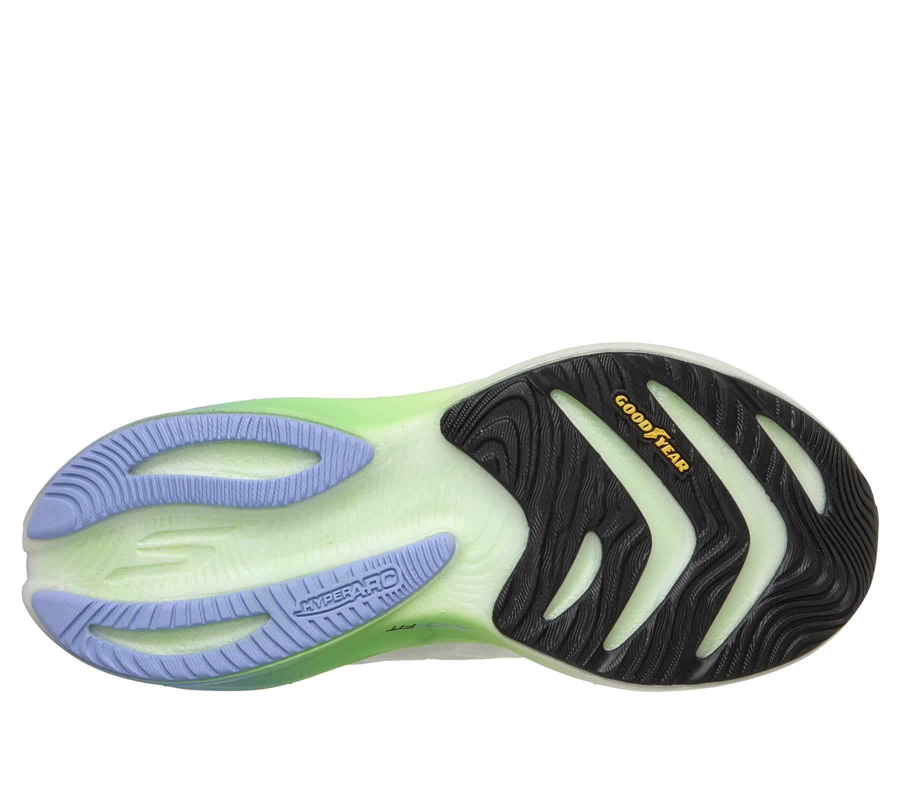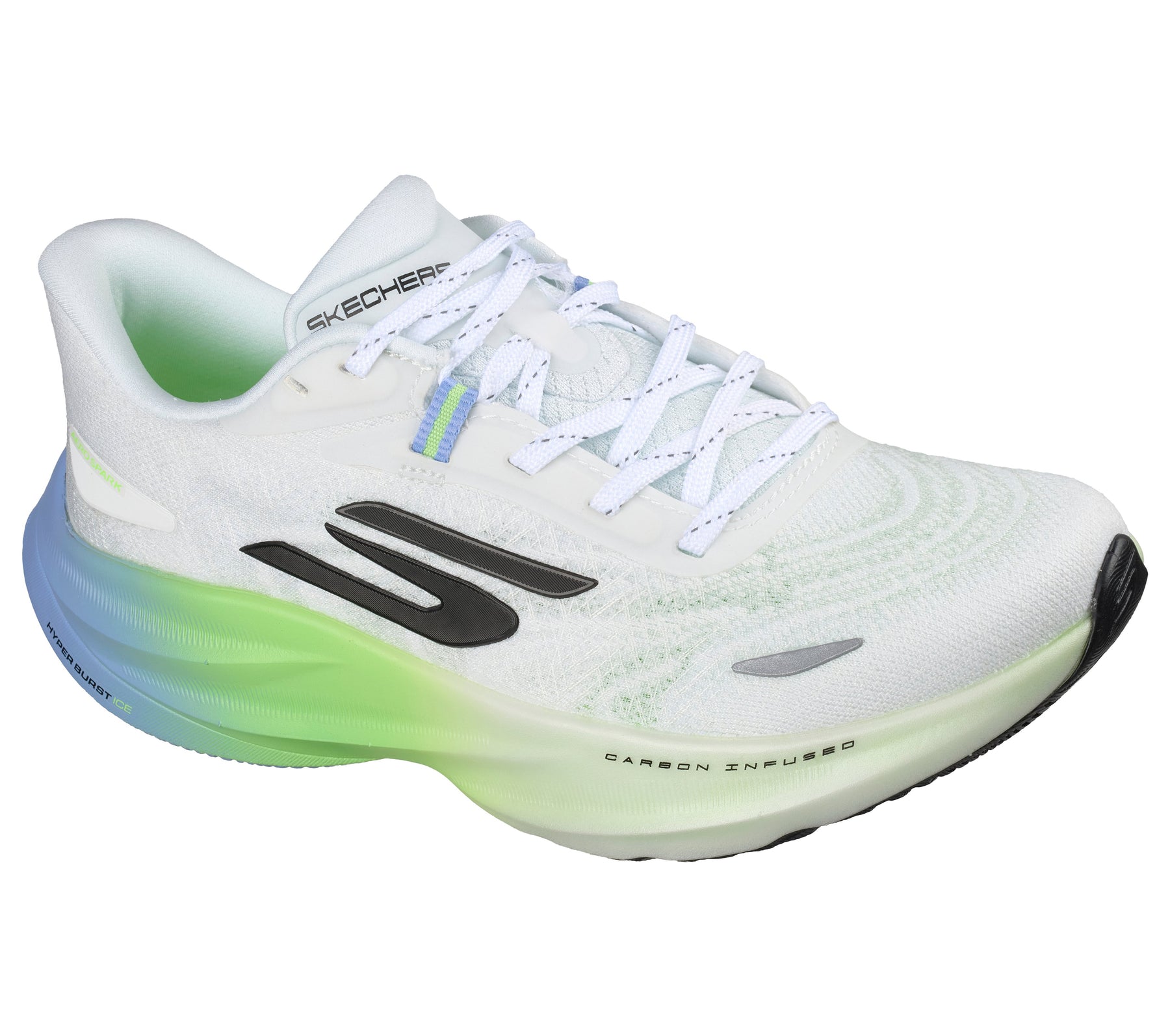 Lace-up breathable engineered mesh and synthetic upper, Versatile daily running trainer, Skechers HYPER ARC® adapts to your running stride to promote a smoother transition from landing to toe off, Stack height: 36mm - 30mm, Offset: 6mm, Weight: 7.8oz/221g in a women's size 7, Machine washable, Crafted with 100% vegan materials, Skechers Performance™ logo detail, This design has been granted the Seal of Acceptance by the American Podiatric Medical Association (APMA), HYPER BURST ICE™ cushioning features dual-density HYPER BURST® technology for a soft and stable run, Carbon-infused H-plate delivers exceptional stability and energy return with an ultra-high stiffness-to-weight ratio, Patented Skechers Arch Fit® insole system with podiatrist-certified arch support, developed with 20 years of data and 120,000 unweighted foot scans, Removable insole helps mold to your foot to reduce shock and increase weight dispersion.