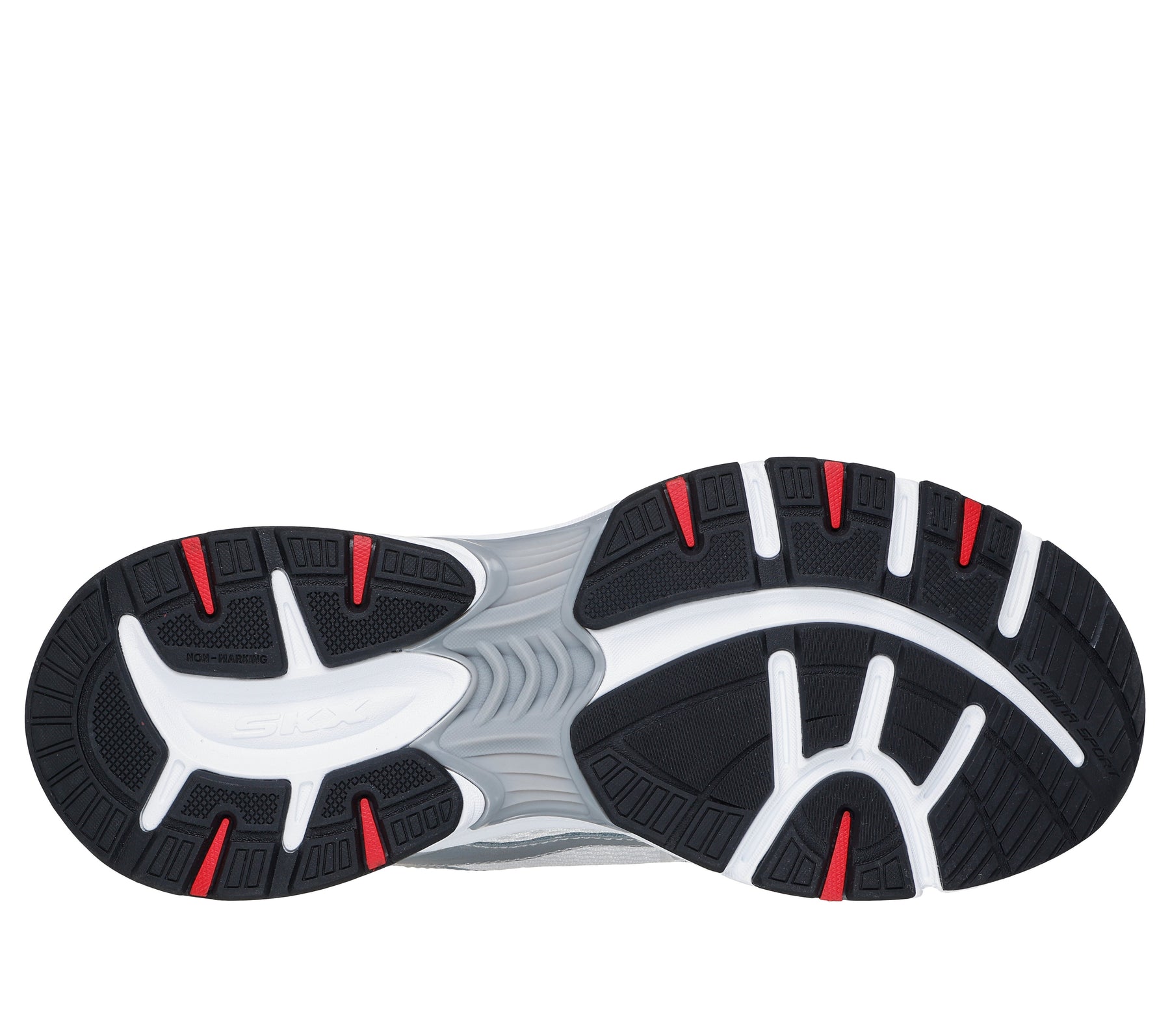 Mesh upper with layered leather and synthetic overlays, Slip-on jogger with adjustable laces and TPU heel clip, Flexible traction outsole, 1 1/2-inch heel height, Skechers® logo detail, Skechers Hands Free Slip-ins® for an easy fit, Heel Pillow® holds your foot securely in place, Skechers Air-Cooled Memory Foam® cushioned comfort insole.